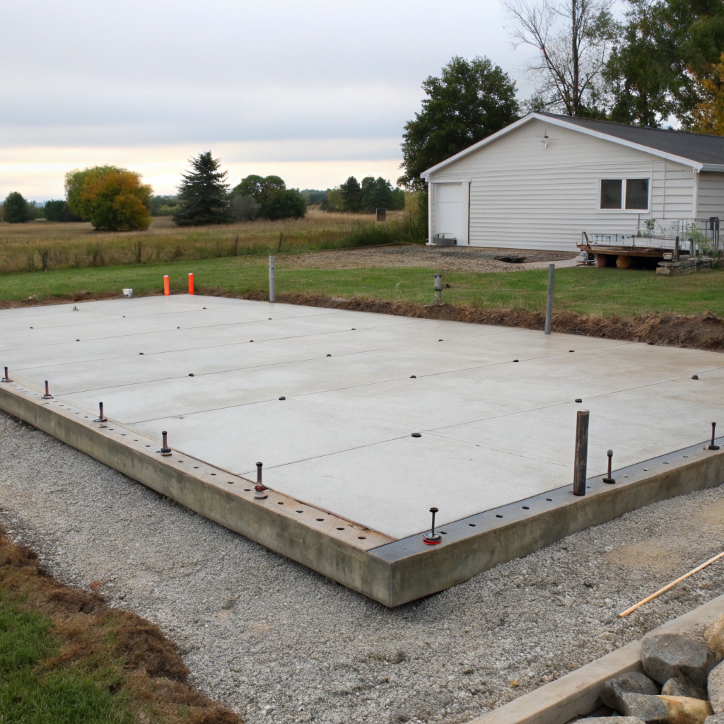 - Site clearing and excavation — We clear the area, remove organic material, and excavate to the correct depth for your slab specification.